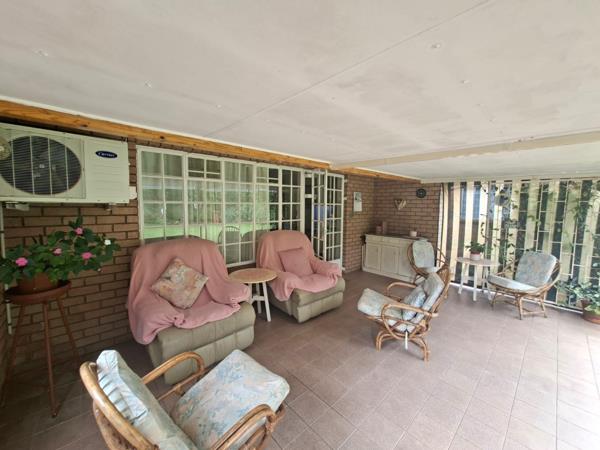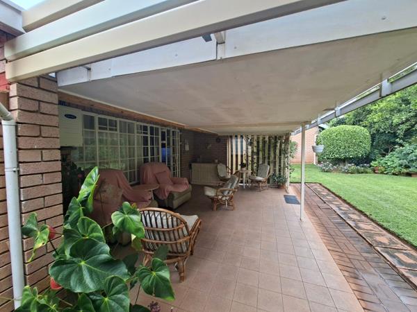 Step out onto the spacious stoep and enjoy the beautifully maintained garden a peaceful outdoor space perfect for morning coffee or spending time in nature. An additional storage unit provides handy space for garden equipment and extra belongings.