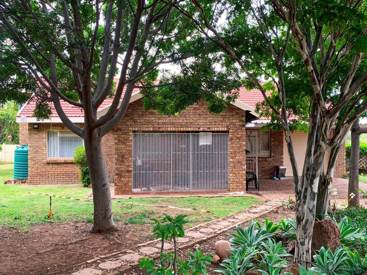 Discover this charming single-story brick home nestled in the suburban complex of Bela Bela, South Africa. Featuring a classic red tile roof and established trees, the property offers inviting curb appeal. A paved walkway leads to the entrance, hinting at the comfort within. This residence presents two bedrooms, two bathrooms, and a single garage, ideal for comfortable living.