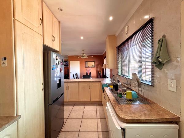 Designed for easy family living and entertaining, the home features a spacious lounge, dining area, and familyTV room, along with a well-planned kitchen fitted with built-in cupboards and ample storage throughout.