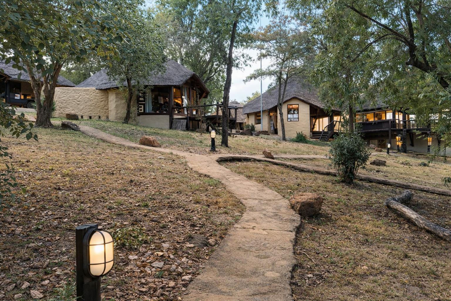 The lodge offers four spacious en-suite bedrooms, each designed as a separate private chalet. Every chalet includes a luxurious bathroom with both an indoor bath and an outdoor shower, allowing you to fully embrace the safari experience. Beautifully lit walkways connect each chalet to the main lodge, enhancing both convenience and ambiance.