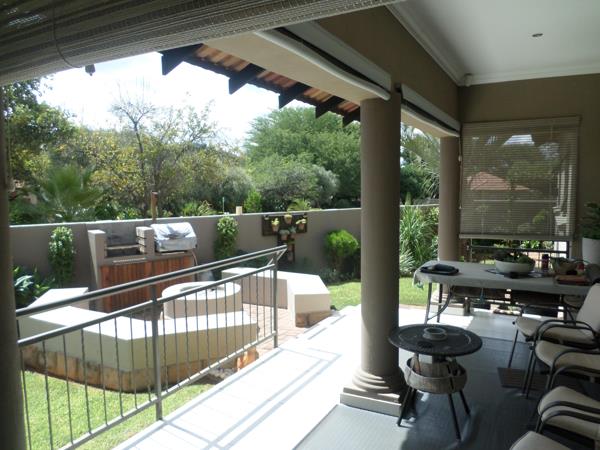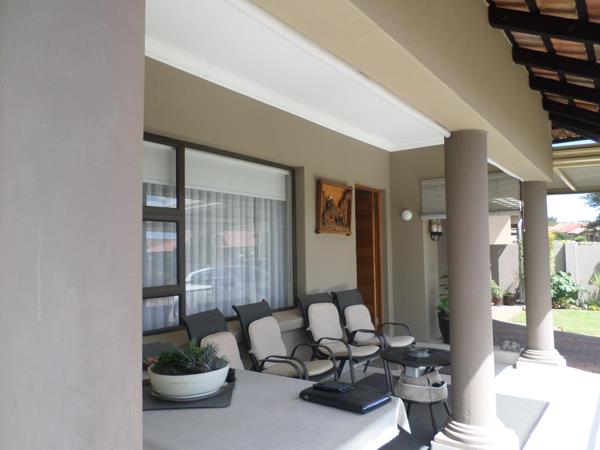 Outdoor living is where this home truly shines. A covered patio with fitted blinds provides the perfect spot to relax, while the built-in braai and boma area create an inviting setting for entertaining family and friends under the stars.