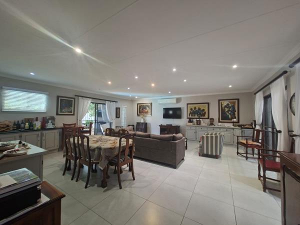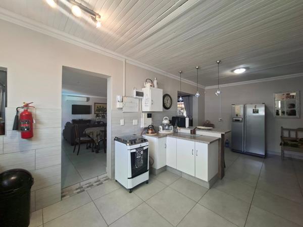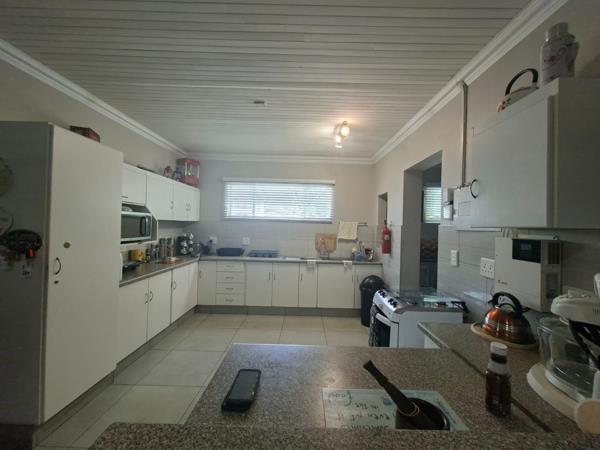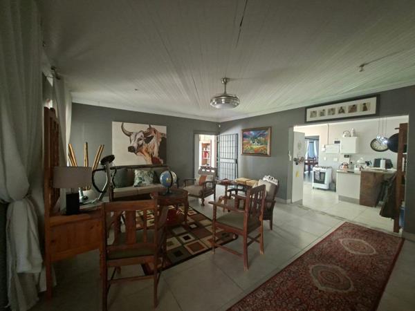Adding further value is the separate accommodation on the property. A fully independent unit includes an open-plan lounge, dining area, and kitchen, along with a small bedroom, a bathroom, and an additional bedroom. This unit also enjoys its own outdoor space with a braai area, making it perfect for guests or rental use.