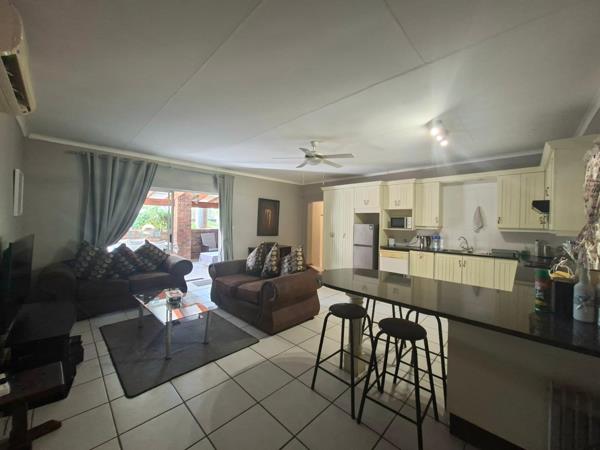 The first unit welcomes you into a spacious and inviting environment, featuring three well-sized bedrooms and two bathrooms. The kitchen flows into a comfortable lounge area, creating a warm space for everyday living. An indoor entertainment area adds to the appeal, perfect for hosting family and friends, while the outside stoep with a built-in braai invites relaxed outdoor gatherings.
