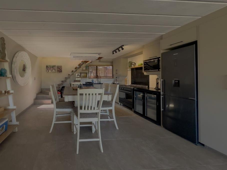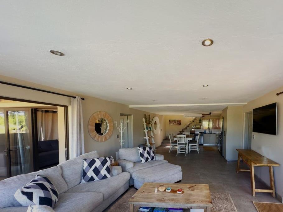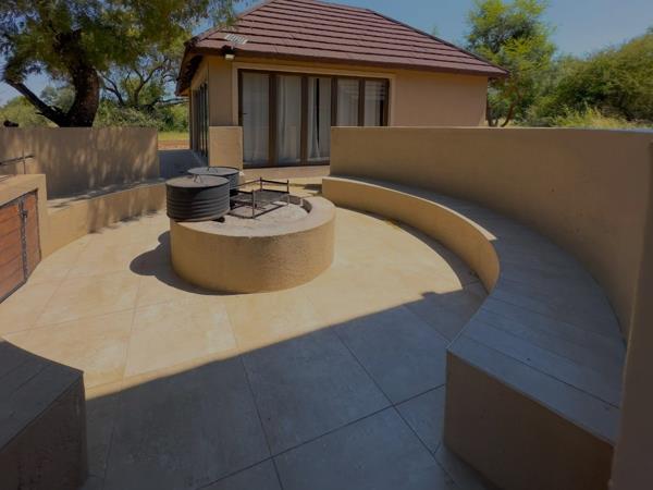 Two bedrooms are located downstairs, complemented by an open-plan kitchen, dining, and lounge area that flows effortlessly onto a covered patio overlooking a beautiful pool and boma, perfect for relaxed bushveld living. Built-in braai on opposite patio to be enjoyed whilst raining.