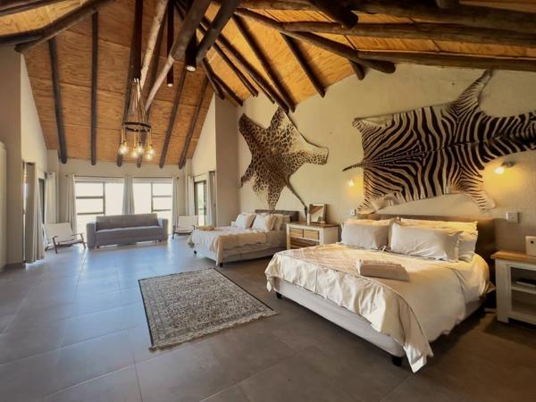 Upstairs, the expansive main en-suite bedroom opens onto a private balcony, boasting breathtaking views over the antelope plains and unforgettable sunsets.