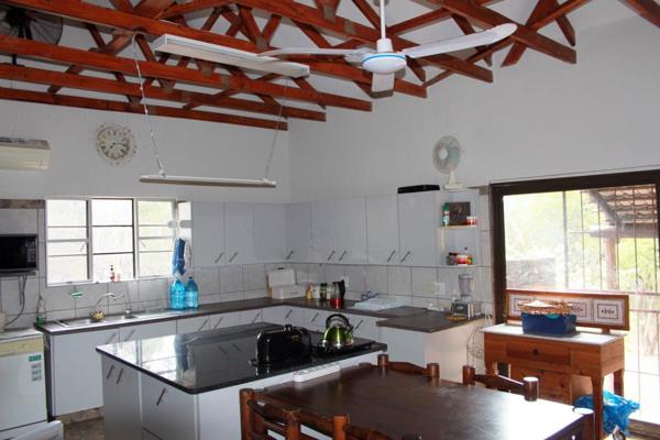 Large 5 bed and 6 bathroom house with 2 bed flat available. Kitchen, dining room, large stoep and lapa with boma and Jacuzzi forms a unit. 5 Aircons and ceiling fans installed. This property comes fully furnished. This facility is appropriate for retiring or as an holiday breakaway home.