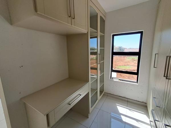 Upstairs, youll find a spacious family room and an entertainment area with a built-in braai, opening onto a balcony ideal for relaxing or hosting guests. The luxurious main bedroom includes a dressing room and a full en-suite bathroom. Two additional bedrooms and a full bathroom complete the upper level.