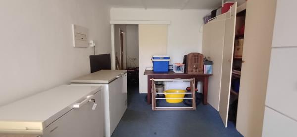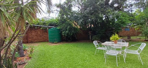 An additional tiled room leading off the main bedroom, fitted with loose cupboards available by separate arrangement, provides access to a bachelor-style flatlet. The flatlet includes a small kitchenette with breakfast nook, a bathroom with shower, toilet, and basin, and direct access to the gardenideal for extended family, guests, or rental income.