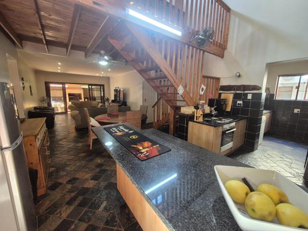 Enjoy an open-plan kitchen and living area that creates a warm and welcoming atmosphere, perfect for entertaining. The property also features double garages, a water tank with a pump, and an inviting outside braai area.