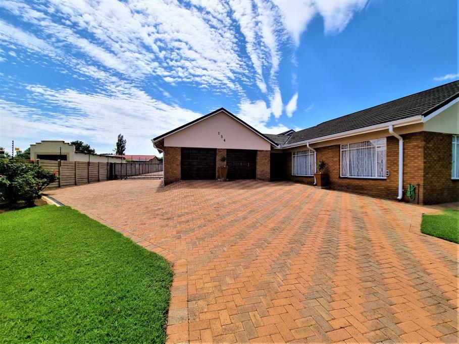 The kitchen leads to the entertainment and braai room fitted with a built-in braai gas and wood ample cupboards with granite tops, another fireplace in the lounge area and a guest toilet. Stacker doors leads you to a covered patio which overlooks the heatedsolar, chlorinated poolfenced and large backyard with a lush green, healthy lawn reminding you of a park.