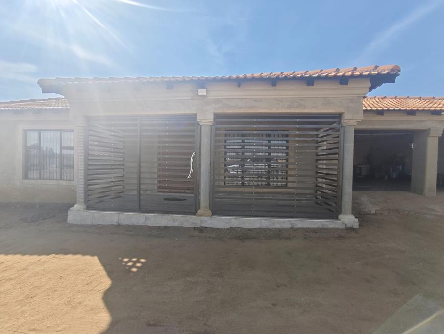 The single-story residence boasts a solid structure, featuring a traditional tiled roof and a light rendered exterior. Architectural details, including decorative columns and cornices, add character to its frontage. Modern security gates and robust window bars are installed, ensuring enhanced safety and peace of mind for residents. A convenient covered carport provides sheltered parking, complementing the property''s practical design.