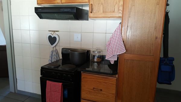 The beautiful kitchen has an electric and gas stove with double electric oven and extractor fan.
