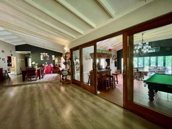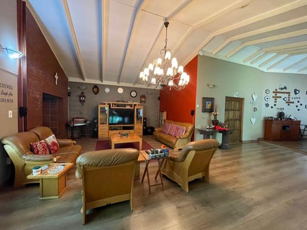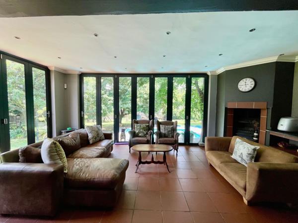 Spacious 4 bedroom family home. Spacious 4 bedroom family home. Entertainers dream home. Large entertainment area with bar and built-in braai overlooking the heated swimming pool and garden. Spacious living area with fireplace. 3 Bathrooms. Lovely garden. Double garage. Separate flat with separate entrance. Alarm system.