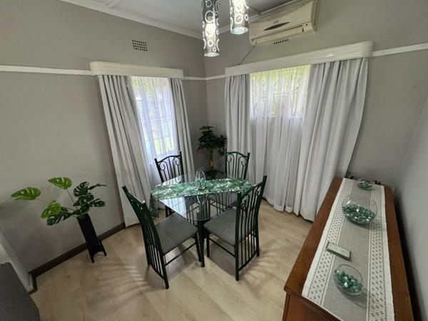 Step inside to find a clean and well-maintained interior featuring an open-plan living and dining area. Neutral grey walls and laminate flooring create a versatile canvas, complemented by good natural light and a modern ceiling fan. The functional kitchen includes a gas stove, ample base cabinetry, and tiled flooring. Three comfortable bedrooms and a well-appointed bathroom complete the practical layout. An air conditioning unit in the dining area ensures comfort.