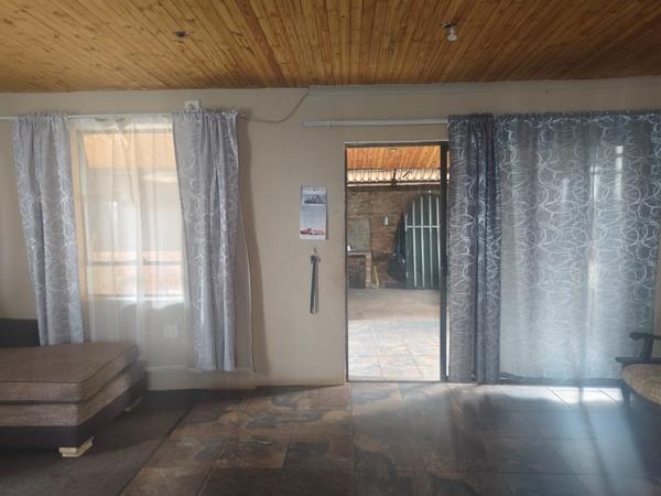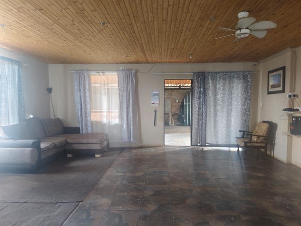 Set on a generous 1189 sqm erf, the outdoor space provides potential for gardening and relaxation, with a grassy yard and paved areas. Parking is convenient with garages, for four vehicles and an additional parking bay. Security is a key feature, highlighted by the security grilles on windows, and a security gate, ensuring a safe environment for residents.
