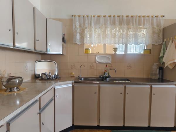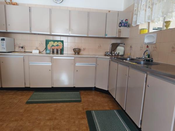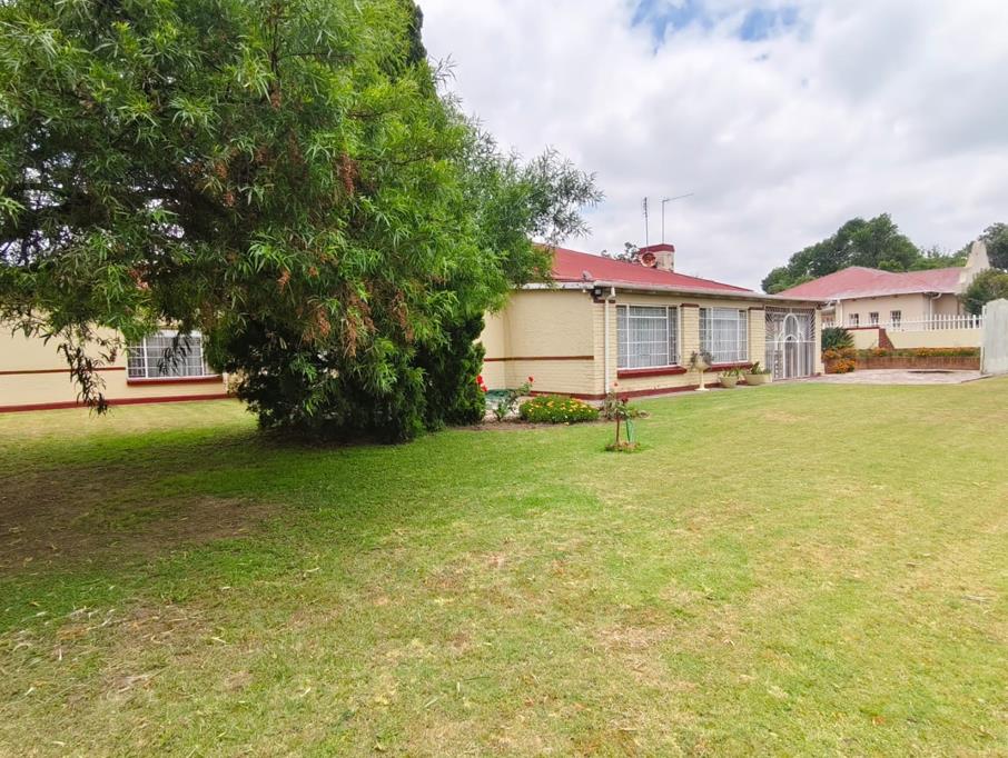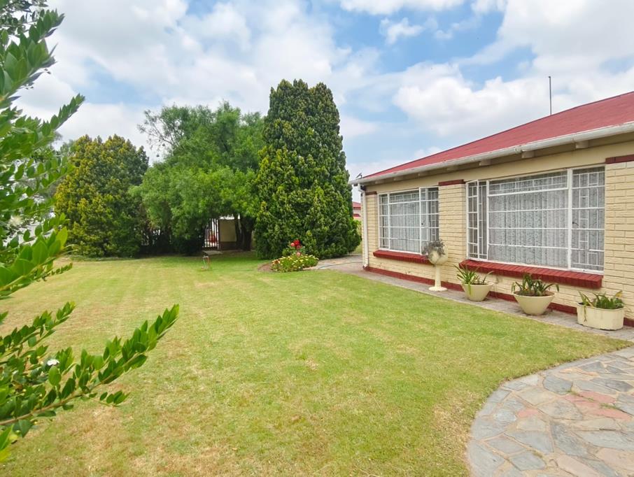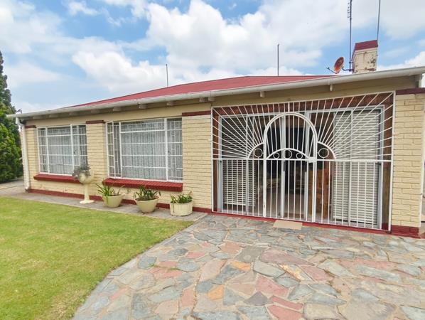 This charming single-story residence in Grootvlei offers welcoming kerb appeal with its traditional design, featuring a distinctive red roof and light-colored brick exterior. Set on a generous 1675 sqm erf, the property boasts an expansive, well-maintained lawn, mature trees, and vibrant flower beds. A paved pathway leads to the entrance, complemented by a comfortable paved patio area perfect for outdoor relaxation and entertaining. The large, fenced garden is ideal for pets and family activities.