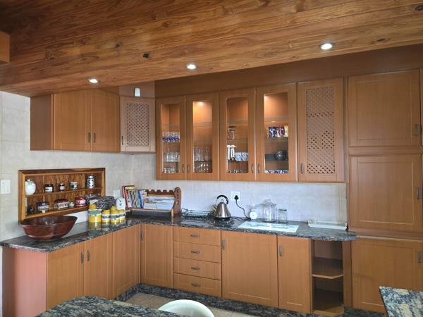 Outdoor amenities comprise a sparkling swimming pool, a welcoming patio, and a built-in braai area, ideal for entertaining.