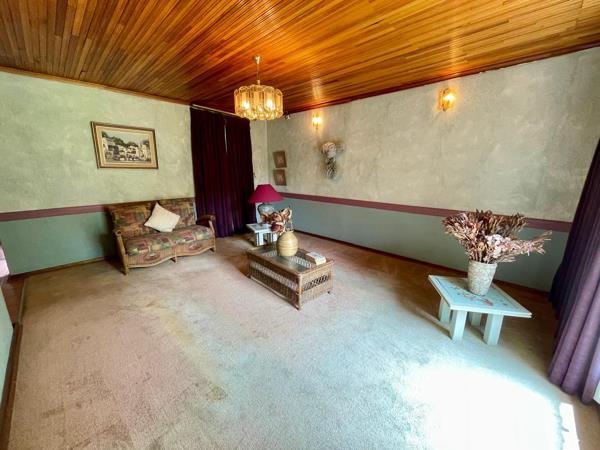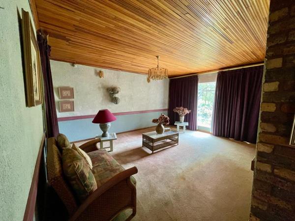Upon entry, a tiled foyer with distinctive wooden ceiling detailing introduces the expansive interior. The property features a generous layout, including a dedicated lounge, a dining room, and a family TV room, all benefiting from abundant natural light. Unique wooden slatted ceilings add character, offering a foundation for sophisticated interior design. The open-plan potential allows for contemporary reconfiguration. A well-appointed kitchen serves the household''s culinary requirements.