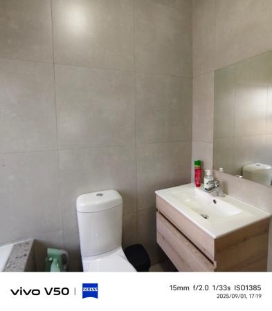 The main suite offers a serene retreat, newly tiled and featuring a luxurious en-suite bathroom with a shower, bathtub, basin, and toilet. Two additional bedrooms, designed with comfort in mind, are located on the opposite wing of the home and share a beautifully appointed family bathroom.