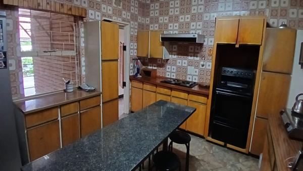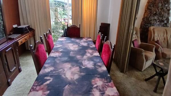This spacious house is situated on a large stand of 1254m2 with an established garden with large trees.