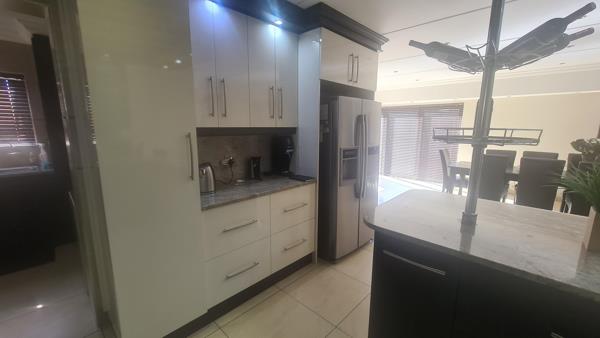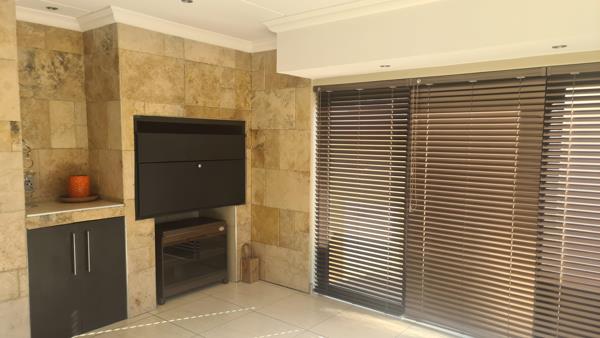 Modern double story unit in complex. Very spacious with large open plan lounge and dining room. An indoor braai with large sliding doors form part of the lounge area. The open plan kitchen is beautiful and modern with lots of cupboards. The scullery provide ample space for appliances like washing machine, dryer and dishwasher. All four bedrooms are on the first floor and served by two lovely bathrooms mes. A pajama lounge close to the bedrooms is comfortable and convenient. The double garage provide direct access to the house -very secure. With all the good security this unit provides a safe haven for older couples or young first time buyers. Located perfectly in the green area.