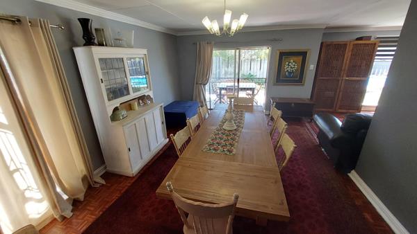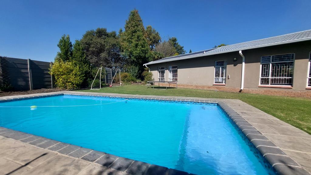 A lovely, cosy home with a lushes garden! Nestling in the best part of the green area, this home offers: three bedrooms, two lovely bathrooms mes a spacious lounge , tv room and dining area. The open plan kitchen boasts a modern gas stove and a separate scullery. The sparkling pool is a huge asset for those warm summer days. The stoep has a lovely view on the pool area and is perfect for entertaining. A double garage with auto doors provide safe parking. Security features include an alarm system and beams.