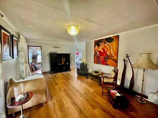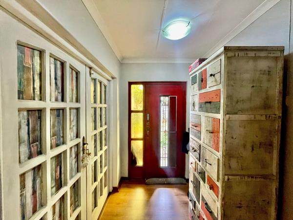 A large covered patio with a built-in braai allows for easy outdoor gatherings, while the cozy indoor spaces are ideal for family dinners or relaxation.