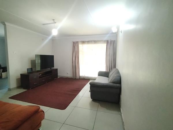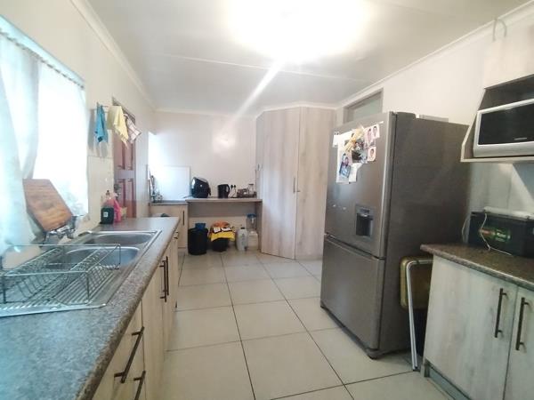 Step inside to a functional layout designed for everyday living. The home includes a welcoming lounge and a dedicated dining room, both benefiting from natural light. The living areas feature a mix of easy-to-maintain tiled flooring and carpet, offering a comfortable atmosphere. The kitchen is equipped with ample light-toned cabinetry, generous counter space, a double basin sink, and accommodates a large refrigerator, making it practical for family meals and entertaining.