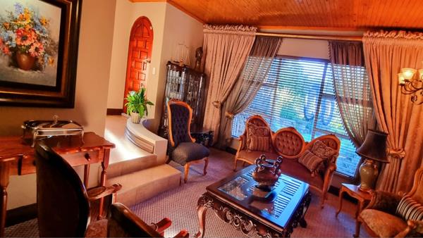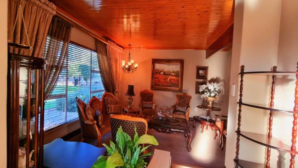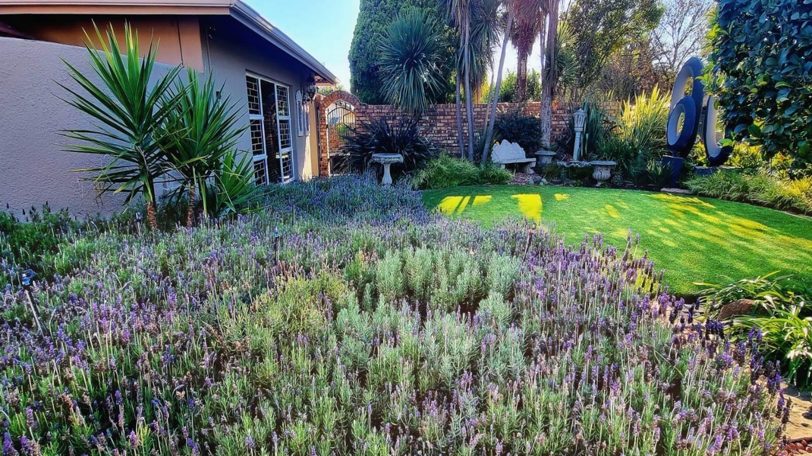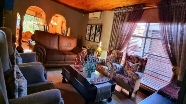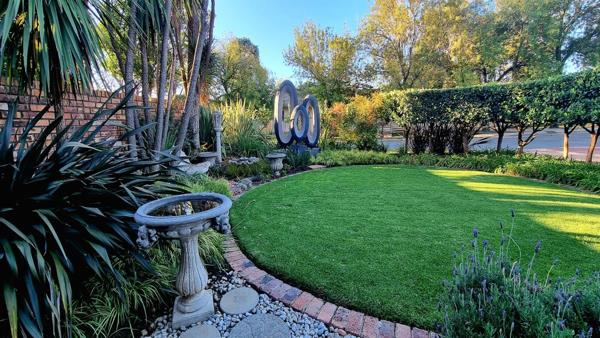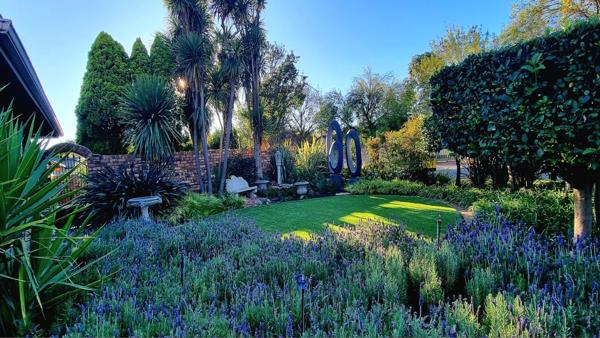 Step outside into a stunning garden oasis, an outside braai, ideal for family gatherings or quiet relaxation. Additional features include a well-equipped laundry room with built-in cupboards, a garage with an electric door and ample storage, and a large, shaded carport.