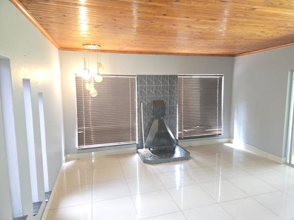Step inside and discover a spacious living area, perfect for family gatherings, featuring a cool wood-paneled ceiling and a modern chandelier. While the carpet might need a refresh, the tiled feature wall gives it a great focal point. There''s also a functional space, perhaps for a home office or a cozy reception area, complete with a built-in wooden counter and an arched doorway adding a bit of flair. Its a space with loads of potential to make it truly your own.