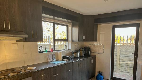 This beautifully maintained home is ideal for comfortable family living. Boasting three spacious bedrooms and two bathrooms, it strikes the perfect balance between functionality and warmth. The lounge and dining area feature elegant wood finishes that add a classic touch. The kitchen offers ample cupboard space, an electric hob, undercover oven, and a scullery for effortless convenience.