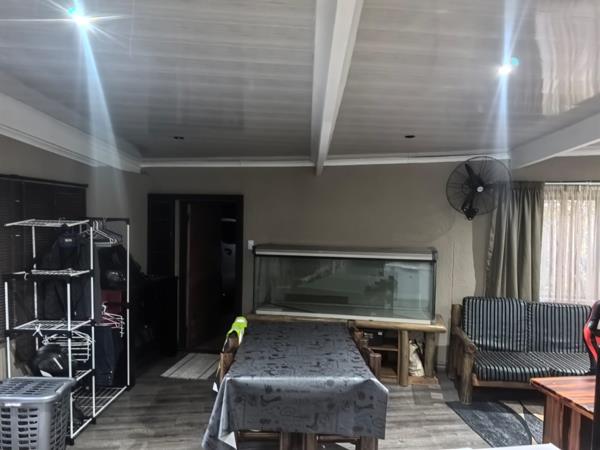 This inviting 5-bedroom, 2-bathroom residence in Secunda offers a blend of comfortable living and practical amenities. The property presents a neat, neutral exterior with a tiled roof and a welcoming covered porch, setting a pleasant first impression for this family home.