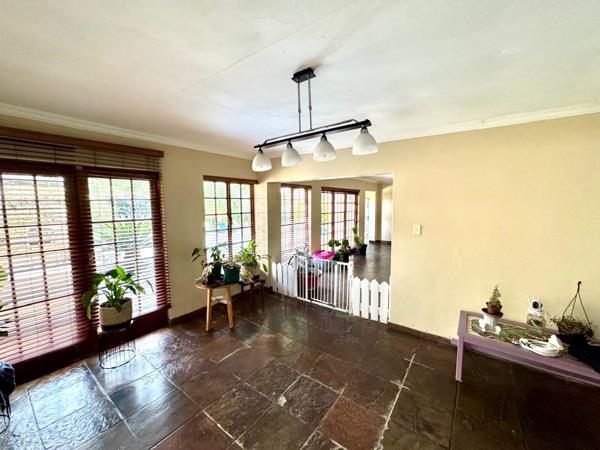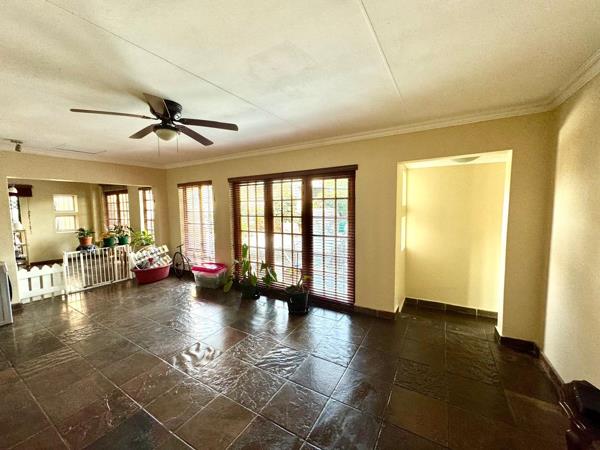 Living areas are expansive and well thought out. The first lounge features a cozy fireplace, perfect for winter evenings. The second living area opens into a spacious indoor braai and entertainment area, complete with a built in bar topped with granite. This space extends to a patio overlooking a heated swimming pool currently being repainted, creating a seamless blend of indoor and outdoor living for year round enjoyment.