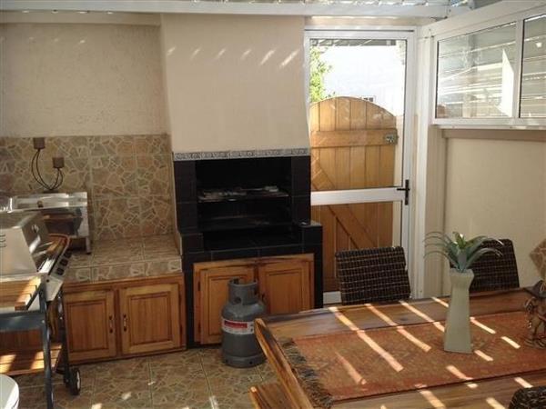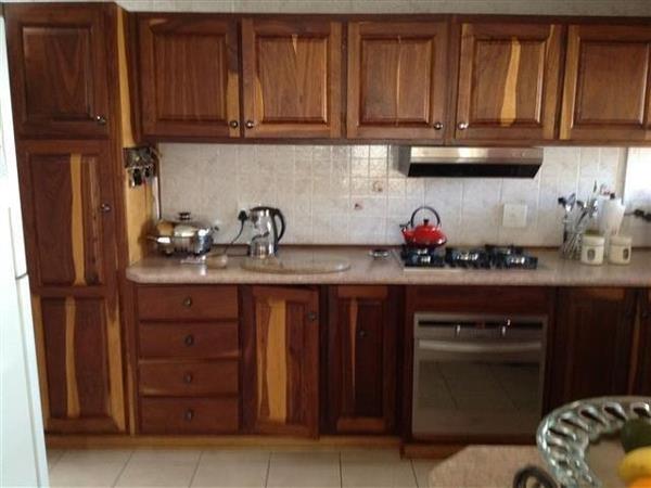 3x carports and wooden kitchen with a Hob, oven and extractor fan.