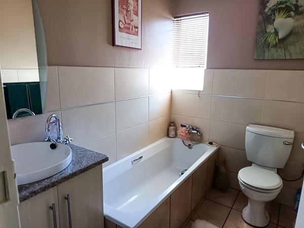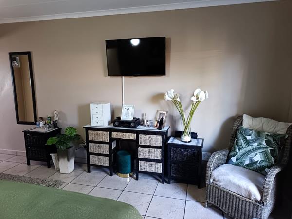 The main bedroom is spacious, boasts with big, modern, build-in cupboards and a view of the garden and has an en-suite bathroom.