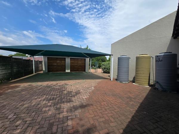 Outside, you have a double garage and a double carport, so parking is never a problem, plus there are three JoJo tanks for water storage and borehole.