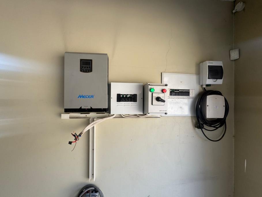 Security is paramount with features such as electric fencing, an access gate, and burglar bars, all within a secure gated community. For added peace of mind and energy efficiency, the property is equipped with a battery inverter system and air conditioning.