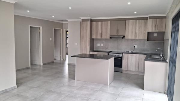 The home features three spacious bedrooms and two well-appointed bathrooms, including a main en-suite. The open-plan living and dining area flows seamlessly into a contemporary kitchen fitted with a gas stove, making it perfect for everyday living and entertaining.