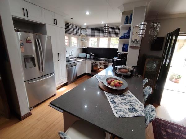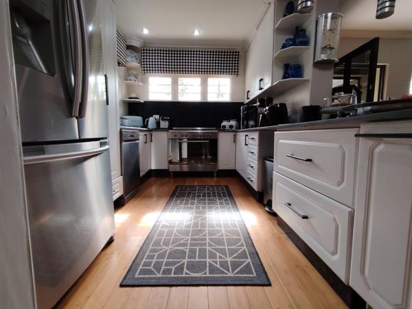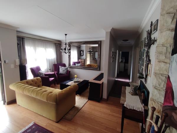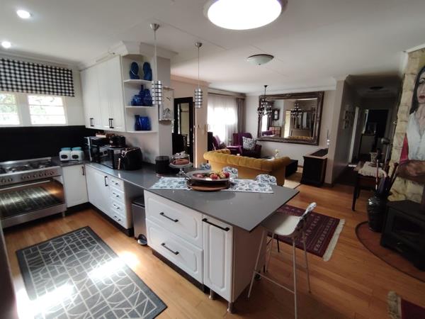 It also offers a double garage, double carport, plus an extra carport suitable for a caravan. The property is equipped with a solar system with batteries, as well as an alarm system, beams, and burglar bars for peace of mind.