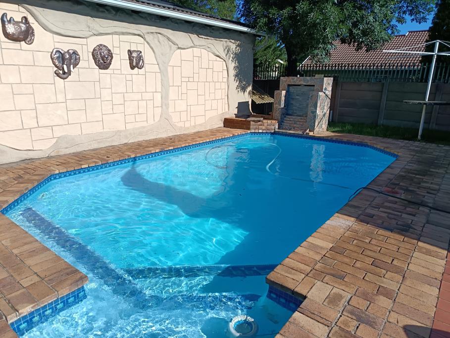 This spacious house boasts with 4 x bedrooms, a study, 2 x bathrooms, a swimming pool, 6 x garages and 1 x carport.