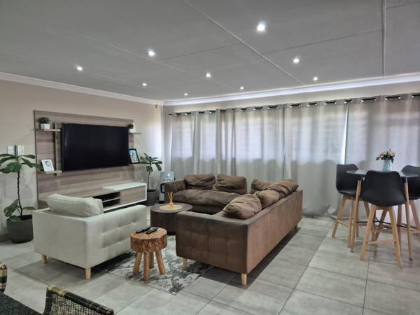 The home features a built-in braai area, perfect for hosting friends and family all year round. A double garage provides secure parking and extra storage space. Added to this is a solar system for energy efficiency and reliable power, along with excellent security to give you complete peace of mind.