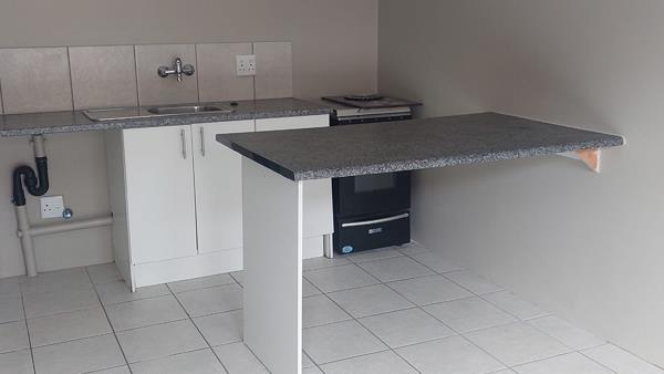 3 Bedrooms all with built-in-cupboards, 1 bathroom with a bath plus overhead shower, neat kitchen equipped with a gas hob, oven, and elegant granite countertops where you can cook while chatting to your family in your open plan, sunny lounge.