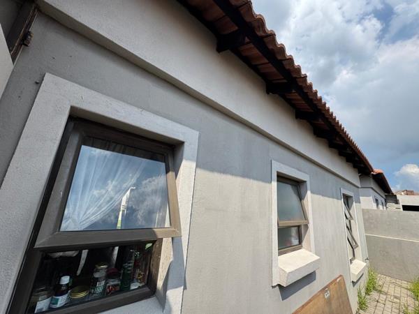 This well-maintained two-bedroom, two-bathroom home with a single car garage offers comfortable living in a neat and modern setting. The exterior features a charming tiled roof, clean plastered finishes, and a paved driveway leading directly to the garage, with a well-kept lawn adding to the homes welcoming street appeal.