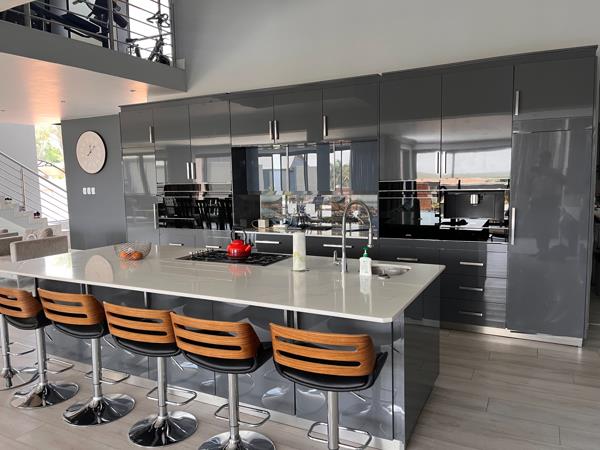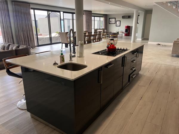 - The family and entertainment areas are designed for gatherings, featuring a built-in braai and sliding doors that extend to the patio, showcasing incredible views of the dam.