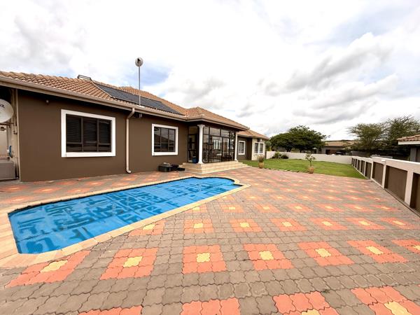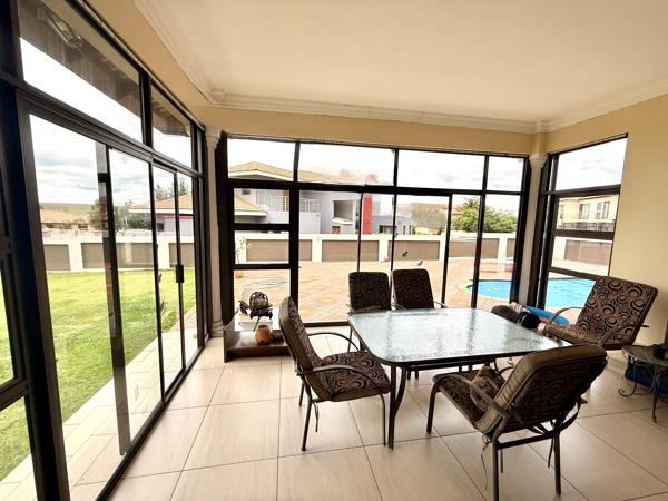 Three of the four well-appointed bedrooms feature their own luxurious en-suite bathrooms, providing privacy and comfort for family and guests alike. The home truly shines with its covered and enclosed patioentertainment area, a versatile space perfect for year-round enjoyment. This area effortlessly opens up to the large, manicured backyard, centered around a sparkling swimming pool, offering a private oasis for relaxation and recreation. Practical features include an automated double garage for secure parking and, crucially, a borehole and Jojo tank system, ensuring reliable backup water supply. This property is more than a house its a sophisticated retreat in a prime location.