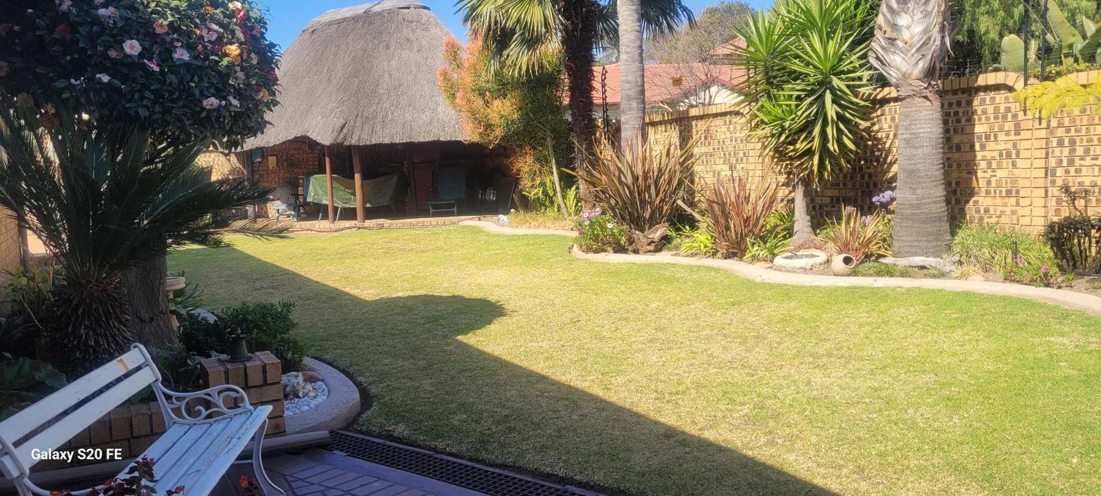 Exquisite landscaped garden.Outdoor large thatched lapa with built-in braai for entertainment.
