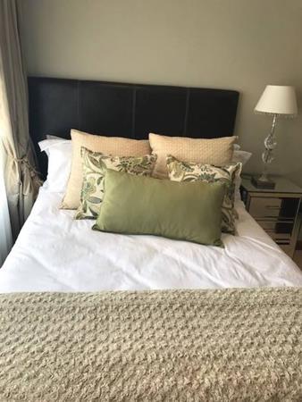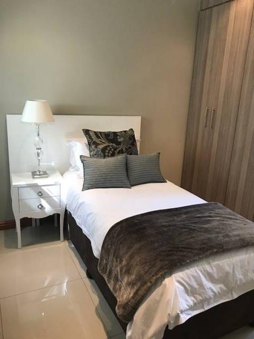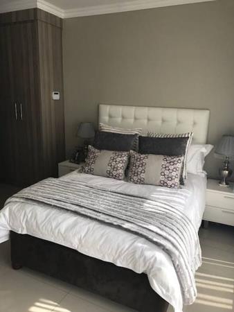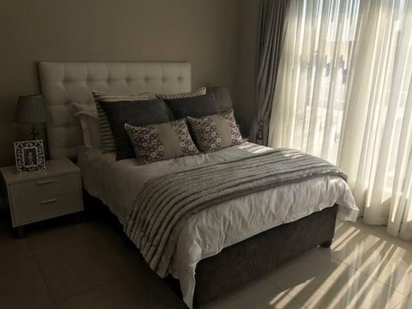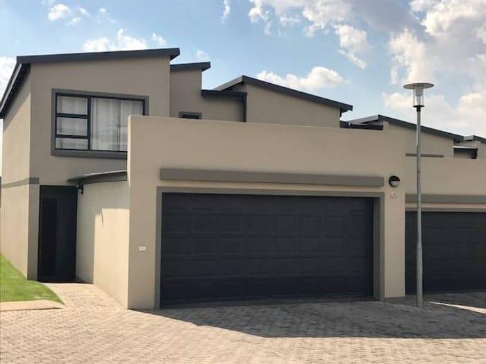 The open plan kitchen has granite/quartz counter tops and also have lots of cupboard space. There is a stainless steel under-counter oven with a 4 solid plate hob and an extractor fan. Before you get to the staircase you will find a guest toilet which consists of a toilet only. When you go up the staircase you will find yourself in the lobby which leads to 3 bedrooms and 2 bathrooms. The main bedroom has an en-suite bathroom. There is also a additional TV point for if you want to mount a TV. All the bedrooms has built in cupboards and all of them can fit a double to king sized bed. The en-suite bathroom consists of a basin, shower and a toilet. The second bathroom consists of a bath, basin and a toilet. Now it is time to tackle outside of the townhouse. The garage is a double garage which is big enough to fit two big cars. There is a covered entrance at the main entrance door. There is a garden as well . 2 Small pets are allowed. There is a built in braai which is optional. If you do decide to take the built in braai then it will unfortunately be an extra cost.
