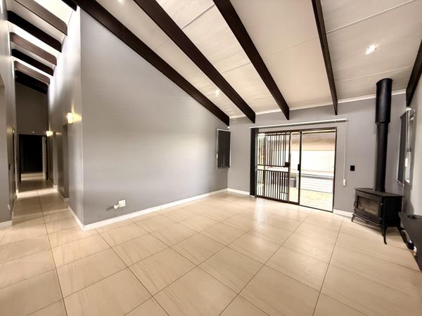 The lounge is complete with a cozy fireplace, ideal for chilly evenings. This central area effortlessly extends outside to a covered braai patio and boma area, making al-fresco dining and socializing a delight. Every detail has been considered for your comfort both bathrooms are fitted with convenient heaters, and the entire house is equipped with cutting-edge smart light switches. Security is paramount, provided by a comprehensive Ring alarm system and full exterior camera coverage.