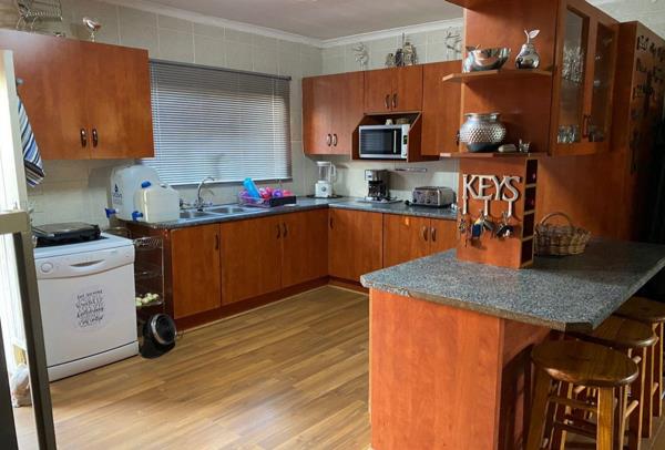 3 well-sized bedrooms, 2 neat bathrooms (main en-suite), kitchen perfect for home-cooked meals, open-plan lounge and dining area ideal for family time, and 2 garages.