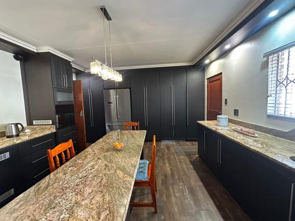 This stylish and well kept 4-bedroom home offers generous living space in a quiet and secured neighborhood . It features 4 dining areas , a laundry room , 3 car garage . Enjoy the outdoor with a sparkling pool ,built in braai area , fully fenced yard and solar panels . Perfect for families looking for comfort , space and peace of mind .